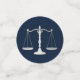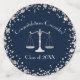 Navy Blue and Silver lawyer graduation design is great with scales and confetti border. Perfect for a law school graduate!