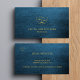 Luxury simple elegant business card for an attorney at law with a faux gold justice stylised scale on vibrant blue classy leather look background. Please note that there is not real leather, the leather look is obtained by printing.