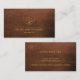Luxury simple elegant business card for an attorney at law with a faux gold justice stylised scale on rusty brown classy leather look background. Please note that there is not real leather, the leather look is obtained by printing.