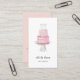 Elegant vertical business cards for your bakery, patisserie or cake decorating business feature a watercolor layer cake illustration in pink and white, with two lines of custom text beneath for your name and business name or profession. Add your contact information to the reverse side on a sugary pastel blush pink background