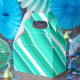 Layered, 3-d look, diagonal stripes in multiple shades of turquoise / peacock and aqua with white