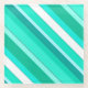 Layered, 3-d look, diagonal stripes in multiple shades of turquoise / peacock and aqua with white glass coasters
