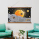 Layered collage aesthetics with celestial motifs, hanging tapestry