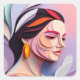 A modern abstract female profile created with layered paper-cut shapes and soft pastel gradients, expressing elegance, calm, and artistic sophistication—ideal for premium stickers, labels and stylish everyday accessories.