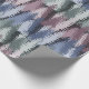 An illustration of layered pine trees arranged in horizontal bands, featuring cool pink, blue, and grey shades.