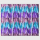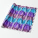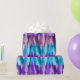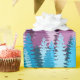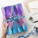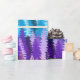 An illustration of layered pine trees arranged in horizontal bands, featuring lilac, cyan and mauve shades.