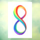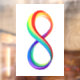 Bright symbol of infinity from plastic layers of red, yellow, green, turquoise, blue and purple saturated colours on white background.