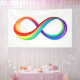 Bright symbol of infinity from plastic layers of red, yellow, green, turquoise, blue and purple saturated colours on white background.