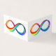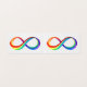 Bright symbol of infinity from plastic layers of red, yellow, green, turquoise, blue and purple saturated colours on white background.