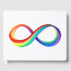 Bright symbol of infinity from plastic layers of red, yellow, green, turquoise, blue and purple saturated colours on white background.