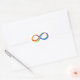 Bright symbol of infinity from plastic layers of red, yellow, green, turquoise, blue and purple saturated colours on white background.