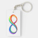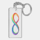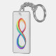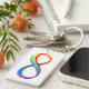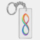 Bright symbol of infinity from plastic layers of red, yellow, green, turquoise, blue and purple saturated colours on white background.