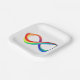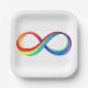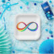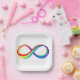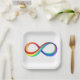 Bright symbol of infinity from plastic layers of red, yellow, green, turquoise, blue and purple saturated colours on white background.