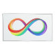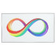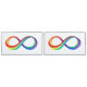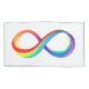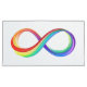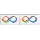 Bright symbol of infinity from plastic layers of red, yellow, green, turquoise, blue and purple saturated colours on white background.