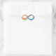 Bright symbol of infinity from plastic layers of red, yellow, green, turquoise, blue and purple saturated colours on white background.