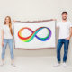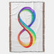 Bright symbol of infinity from plastic layers of red, yellow, green, turquoise, blue and purple saturated colours on white background.