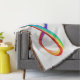 A quality printed throw has its advantages. This is a much finer weave throw than its loopier cousins, and though lighter, it is worth the investment for custom room accessorizing. The back is much prettier than the typical brown, and the fringe on the long sides very vivid, the selvage nicely done. Before photographing, I washed the throw in cold water, delicate, with a thicker woven throw the same size. On tumble dry low, this throw was dry in half the time as the other. This is a very practical quality if you use throws for furniture covers or to wrap up in frequently. The sleekness of the fabric makes it a great layer for accenting or protecting without the feeling of sitting on too much stuff. Perfect for napping or when you feel a light chill coming on. The color printing is beautiful and on this fabric, matched the design and color of my Photoshop image. This is an advantage for blending room fabrics and colors. The fringe on the short sides prints the colors from the design image and therefore varies from the side fringe. I streaked a white fractal line through the plaid pattern to give the illusion of weaving. This printed as crisp as an illusory thread, and put some white in the short side fringe, showing another advantage of print vs loomed- for artistic purposes, line lines, detail, and color integrity can be planned and preserved. My loomed throws have color limitations and more of a needlepoint texture. Print throws reproduce an exact image. The throw felt a little stiff straight out of the package, but this went away in the first delicate wash. Of course I searched the wash water for ink or bleeding and there was none.