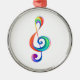 Musical key drawn from multicolored layers of rainbow colours on white background.