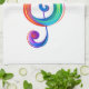 Musical key drawn from multicolored layers of rainbow colours on white background.
