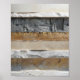 The image showcases a close-up view of a layered stone texture. The layers are arranged horizontally, each with a distinct colour and pattern. The top layer is a smooth, off-white surface, followed by a textured grey layer resembling rough-hewn stone. Below that is a layer of gold with a cracked, aged appearance.