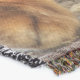 A quality printed throw has its advantages. This is a much finer weave throw than its loopier cousins, and though lighter, it is worth the investment for custom room accessorizing. The back is much prettier than the typical brown, and the fringe on the long sides very vivid, the selvage nicely done. Before photographing, I washed the throw in cold water, delicate, with a thicker woven throw the same size. On tumble dry low, this throw was dry in half the time as the other. This is a very practical quality if you use throws for furniture covers or to wrap up in frequently. The sleekness of the fabric makes it a great layer for accenting or protecting without the feeling of sitting on too much stuff. Perfect for napping or when you feel a light chill coming on. The color printing is beautiful and on this fabric, matched the design and color of my Photoshop image. This is an advantage for blending room fabrics and colors. The fringe on the short sides prints the colors from the design image and therefore varies from the side fringe. I streaked a white fractal line through the plaid pattern to give the illusion of weaving. This printed as crisp as an illusory thread, and put some white in the short side fringe, showing another advantage of print vs loomed- for artistic purposes, line lines, detail, and color integrity can be planned and preserved. My loomed throws have color limitations and more of a needlepoint texture. Print throws reproduce an exact image. The throw felt a little stiff straight out of the package, but this went away in the first delicate wash. Of course I searched the wash water for ink or bleeding and there was none.