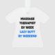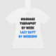 This text design featuring the phrase "Massage Therapist by Week Lazy Butt by Weekend" is perfect for anyone who is a hard working massage therapist through the week but a lazy butt once the weekend rolls around.