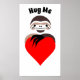 A stencil sloth hugging a red love heart. The sloth arm is in a cross over each other.