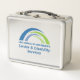 This is a standard metal lunchbox that appears to work just fine. We designed this box ourselves with an uploaded photo and custom text on the front and back. It looks absolutely beautiful except the front of the lunchbox is not centered like it shows in the photo. The print borders don't align with the inset flat part of the box where the preview photo online showed it perfectly centered in there. The back looks nice and centered though.