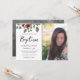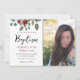 Girly Watercolor stylised rose and leaf design with white background. Simple and modern design. Text can be adjusted as well as font colours and background colour. One Photo Option. LDS baptism invitation in shades of green, red, wine, and grey. Leaf and rose photo overlay.