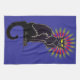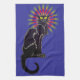 This tea towel for cat lovers and fans of vintage cat art features one of the most famous black cats in the art world. The black cat with the brilliant yellow eyes is from the iconic Tournee du Chat Noir poster by Swiss-born French Art Nouveau painter Theophile Alexandre Steinlen. Steinlen created the poster advertising a tour of Le Chat Noir cabaret artists in 1897 for his friend and owner of the nightclub, Rudolphe Salis. Paying homage to the real star of the poster, I’ve replicated the illustration of the cat minus the distraction of the wording, adding a colourful striped halo to the cat’s head so that he almost looks lit from within. You can change the blue background colour to suit with the customise button.