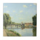 Le Pont Du Chemin De Fer, Pontoise. Camille Pissarro. Cute spring landscape in light colours. On the bank of a wide river there is a road and a large tree. There is a bridge across the river. On the other side is a small town. There are small clouds in the blue sky. Reproduction of famous works of art images in the public domain.