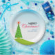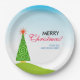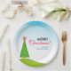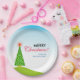 Le Sapin paper plate features a cute, well-decorated green Christmas tree on a hill and with a red bright star at its top. A 'sapin' is the french Christmas tree. © Morning 6
