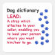 Dictionary for Dogs LEAD: A strap which attaches to your collar, enabling you to lead your person where you want him/her to go. Dog dictionary if written by your dog. Little Pearls of Wisdom to make you smile.