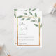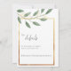 This simple design features green watercolor leaves surrounded by a gold border. Includes wedding information via website for those who are RSVPing online.