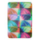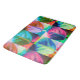 The abstract artwork by ZoeSPEAK on this Bath Mat began as Zoe’s original photograph of a leaf from a sea grape plant. The design explores the variety of colour combinations coming from the bright light and shadow areas of the smooth, almost oval shaped leaf, and the background. There are bright reds, pinks, lavenders, aqua and dark blues, orange and dark and light greens. The veins and stem of the leaf add dimension and colours.