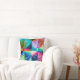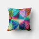 The abstract artwork by ZoeSPEAK on this square Throw Pillow began as Zoe’s original photograph of a leaf from a sea grape plant. The design explores the variety of colour combinations coming from the bright light and shadow areas of the smooth, almost oval shaped leaf, and the background. There are bright reds, pinks, lavenders, aqua and dark blues, orange and dark and light greens. The veins and stem of the leaf add dimension and colours.