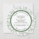 Greenery leaf green leaves pattern round wedding invitation. The focus of this lovely wedding invite is a floral pattern made of leaves in green and a white frame with scalloped green outline that holds your wording.