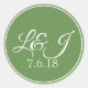 Leaf Green & White Couple's Initals & Wedding Date Classic Round Sticker