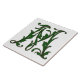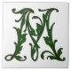 The letter M in Leaf style done in green on a white background with a slight shadow to give it a three dimensional effect.