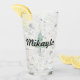 Personalise with your name over the logo of a leaf on this drinking glass. The leaf can be replaced with a monogram or your own logo.
