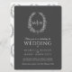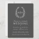 Dark grey and white hand-drawn growing leaf oval wreath botanical art wedding invitations. Simple leaf design circling your own monogram initials design. In classic dark grey and crisp white. Other colours and matching items are available. © Original oval wreath leaf drawing and design by Sarah Trett for www.mylittleedenweddings.com on Zazzle.