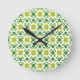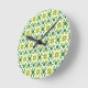 Leaf Pattern, Pattern Of Leaves, Green Leaves Round Clock