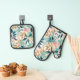 This elegant set includes an oven mitt and pot holder. The design features a pattern of leaves, in a striking combination of pink, blue and faux gold. The fresh leafy design makes these a pretty addition to the kitchen, and an ideal gift for garden lovers. Personalise with an initial as a monogram as a stylish finishing touch.