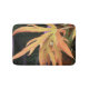 The artwork on this small Bath Mat is an original closeup photograph by HomeWare of a leaf on a young coral plant. The plants have palmate leaves whose leaflets have notched edges. After a shift in colour, the leaf looks reddish gold. The flower pots have become purple, all against a dark brown and green background.