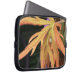 The artwork on this 10” Laptop Sleeve is an original closeup photograph by HomeWare of a leaf on a young coral plant. The plants have palmate leaves whose leaflets have notched edges. After a shift in colour, the leaf looks reddish gold. The flower pots have become purple, all against a dark brown and green background.