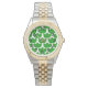 This women's watch has a Scandinavian design of leaf trios repeating across the design in three shades of green.