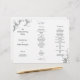 White tri-fold wedding program template with silver grey leafy flourish and text to match. Customise three sections with ceremony information and fold accordion style.