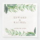 Watercolor green shadings for simple leafy sprays. Foliage is screened with white overlay and names and date are customisable. Font colour is granite Brown.