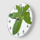 "Leafy Haven: A Small Green Frog on a Grape Leaf" Large Clock