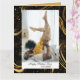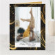 Elegant, cute and modern - this Father's Day card features your favourite photo with Dad in a golden leafy swirl black frame with modern calligraphy. Personalise the front with your photo, name, quote and wishes (Happy Father's Day). At the reverse side is a matching design, and there is a placeholder where you can put your favourite text.